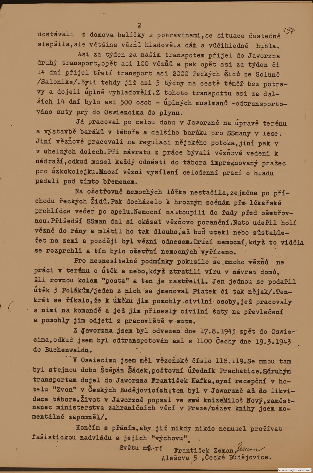 Oświadczenie Franciszka Zemana, byłego więźnia podobozu Neu Dachs, [w:] Oświadczenia, t. 55, k. 196-197.