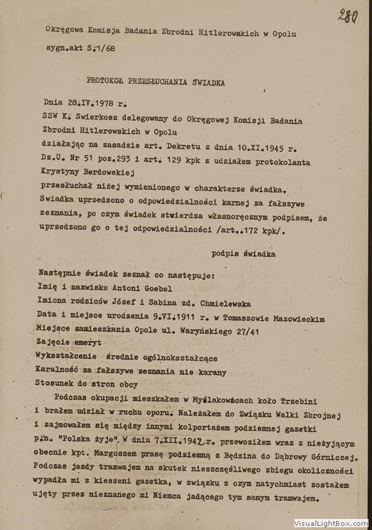 PROTOKÓŁ PRZESŁUCHANIA ANTONIEGO GOEBL