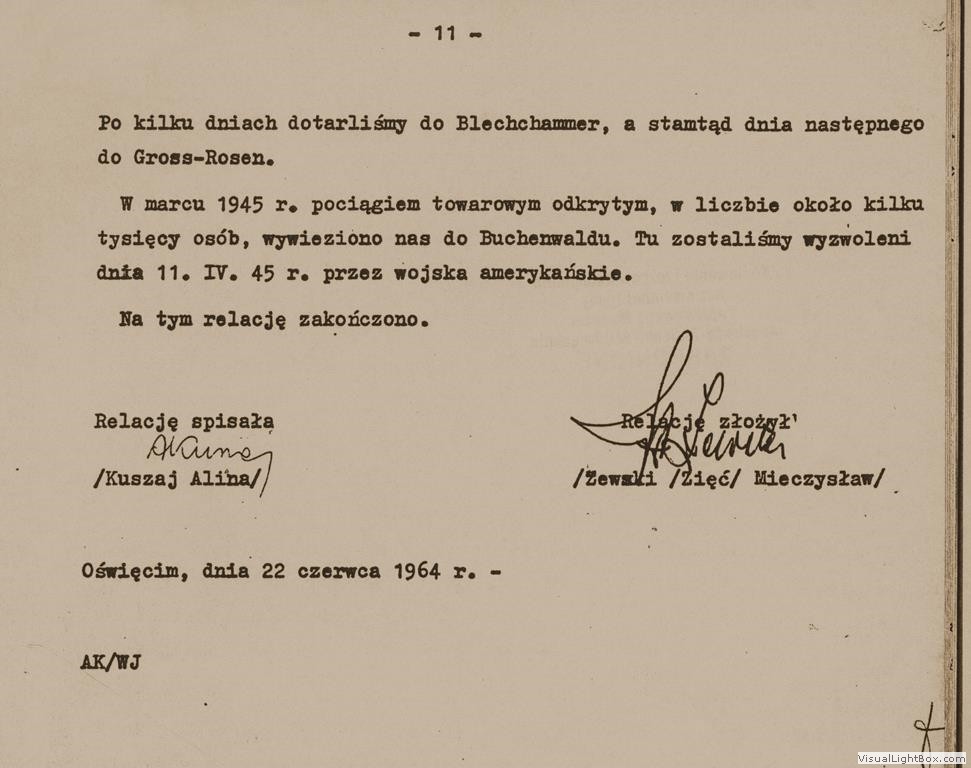 Relacja Mieczysława Zięcia Zewskiego, byłego więźnia podobozu Neu Dachs, [w:] Oświadczenia, t. 43, k. 119-124.