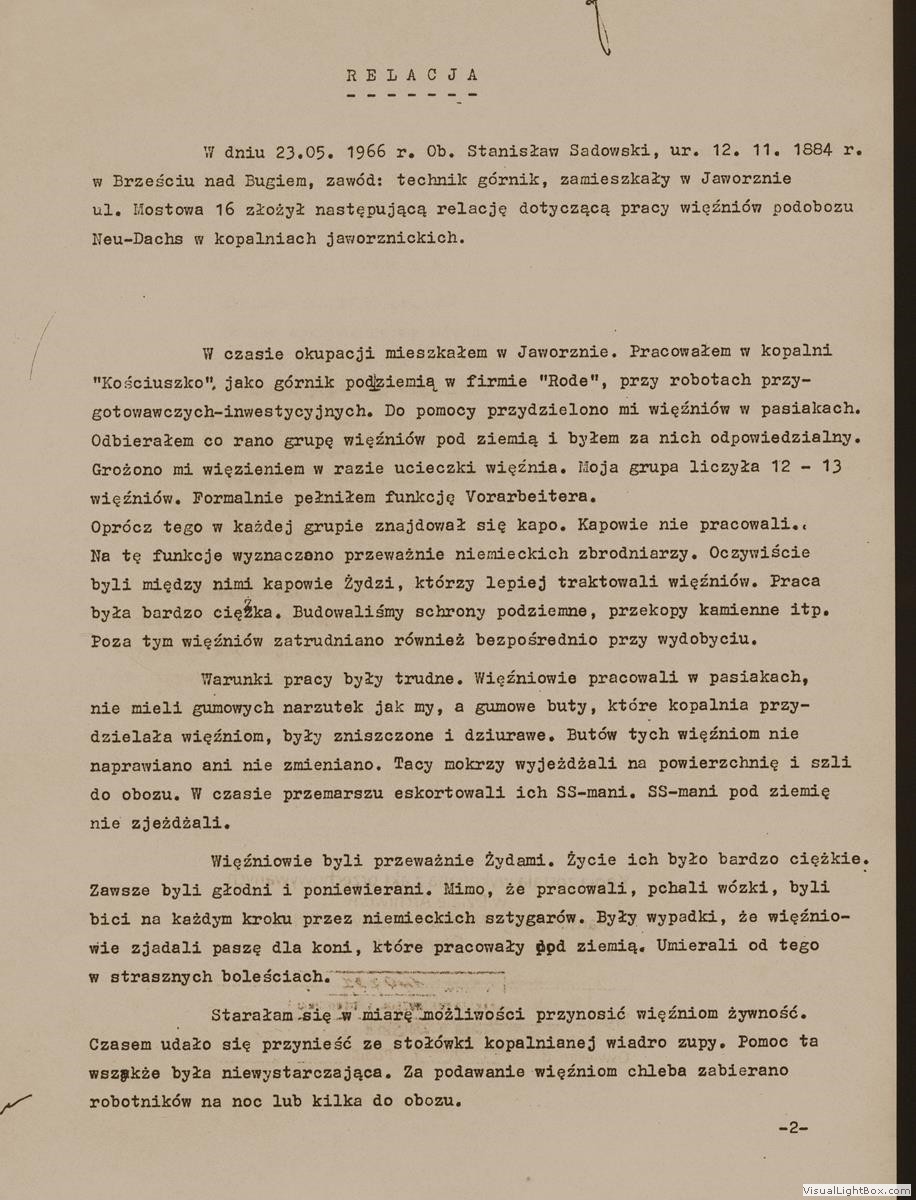 Relacja Stanisława Sadowskiego, cywilnego pracownika kopalni Jacek Rudolf, [w:] Oświadczenia, t. 51, k. 156-157.