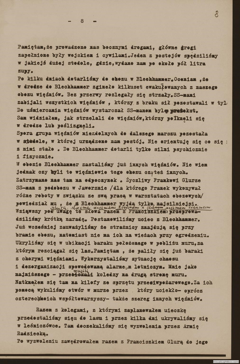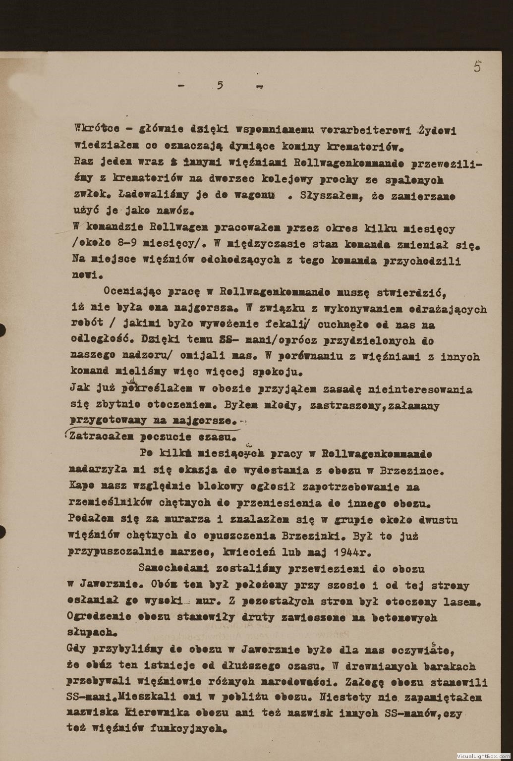 Relacja Władysława Bujewicza, byłego więźnia podobozu Neu Dachs, [w:] Oświadczenia, t. 94, k. 5-9. Ze zbiorów Archiwum Państwowego Muzeum Auschwitz - Birkenau.