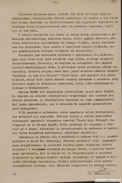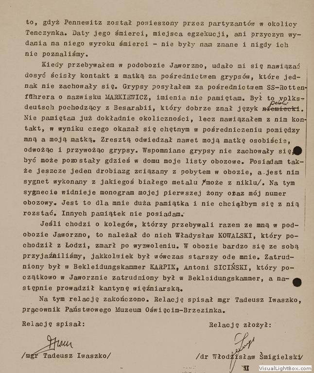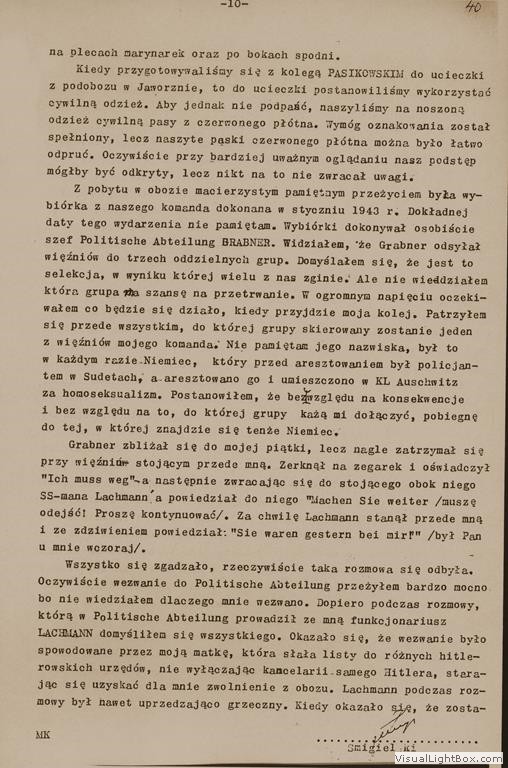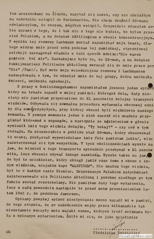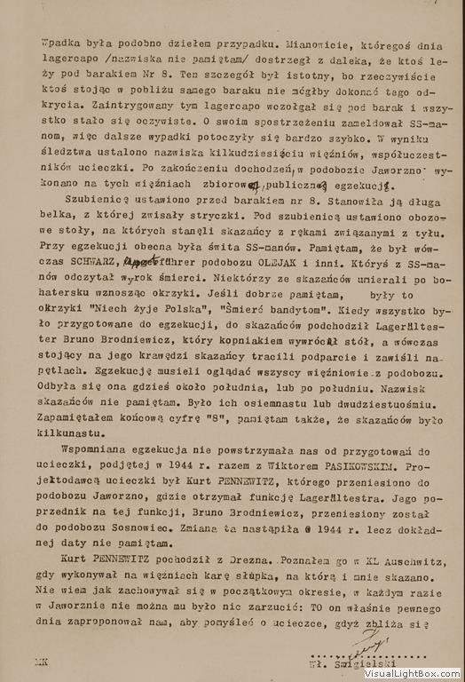 Relacja Włodzisława Śmiegielskiego, byłego więźnia podobozu Neu Dachs, [w:] Oświadczenia, t. 111, k. 39-47.
