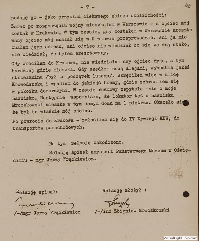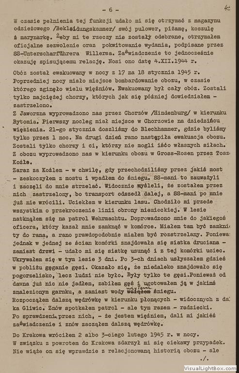Relacja Zbigniewa Mroczkowskiego, byłego więźnia podobozu Neu Dachs, [w:] Oświadczenia, t. 46, k. 44-46