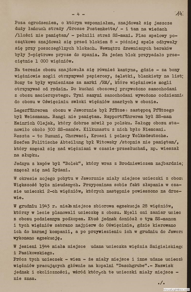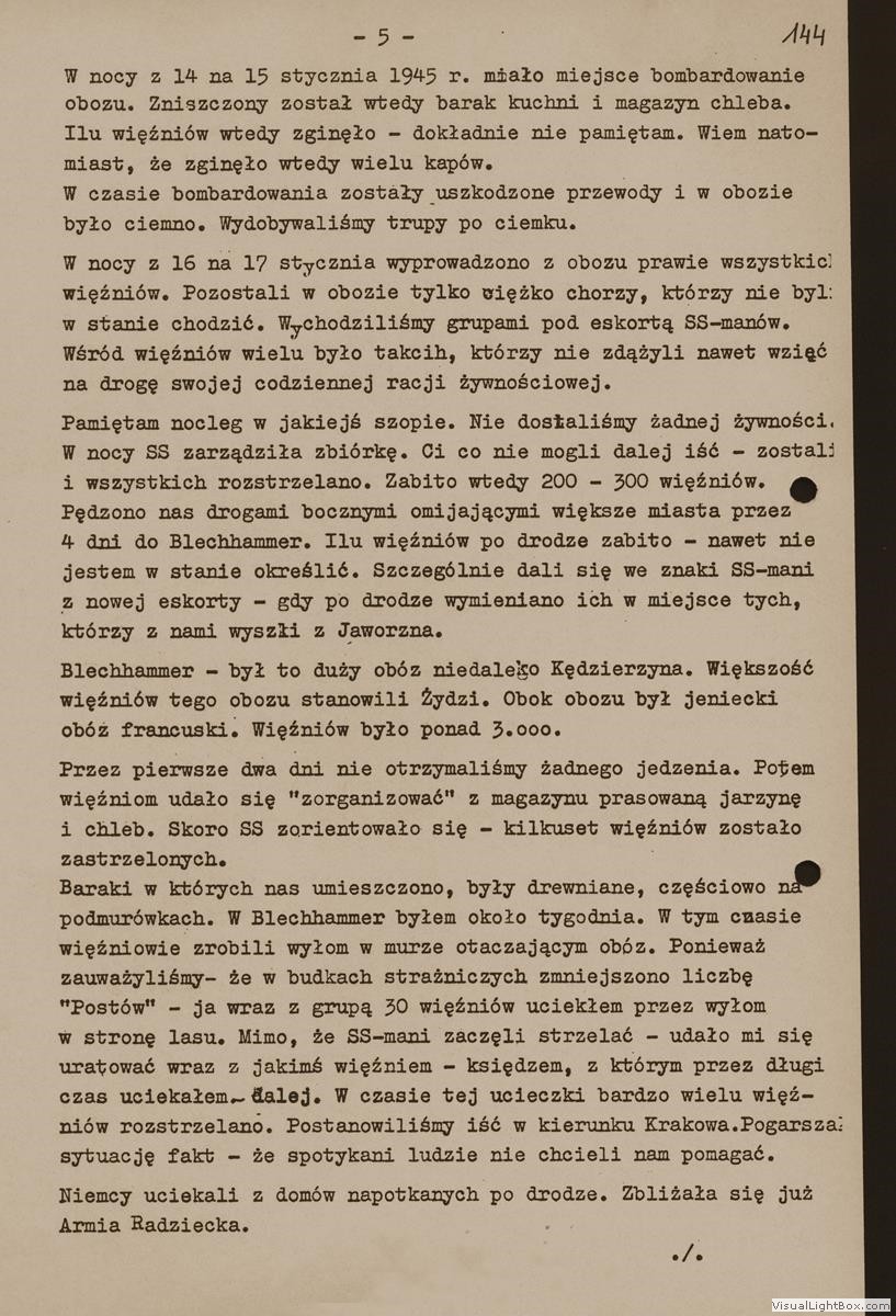 Relacja Zbigniewa Tokarskiego, byłego więźnia podobozu Neu Dachs, [w:] Oświadczenia, t. 40, k. 142-145. Ze zbiorów Archiwum Państwowego Muzeum Auschwitz - Birkenau.