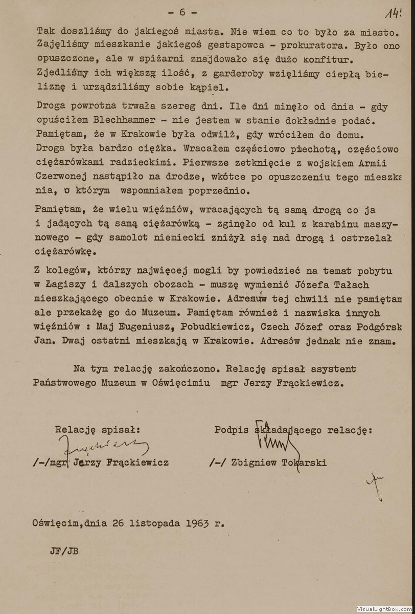 RELACJA ZBIGNIEWA TOKARSKIEGO